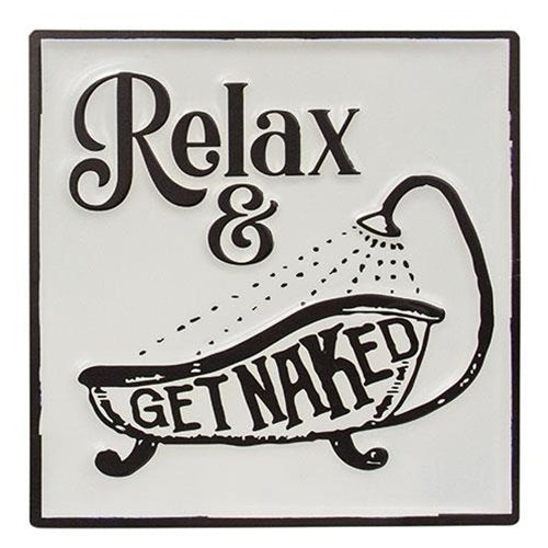 Relax & Get Naked Enamel Sign
