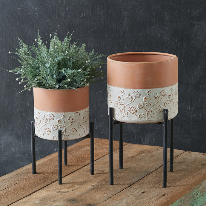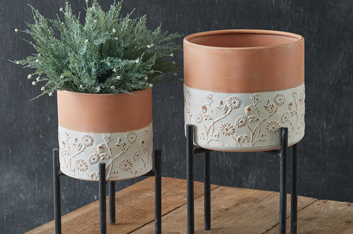 Floral Embossed Plant Stand Set