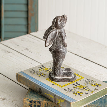 This rabbit statue is made of cast iron and would look cute sitting on a shelf or outside on a picnic table.
