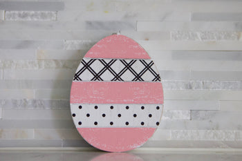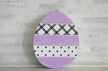 - Two wooden eggs (pink & purple) 4" x 5"x .5"