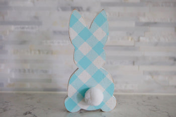 - ADD ON: Blue Plaid Bunny 3.75" x 6.75" x 1". You can add the blue plaid bunny to your order if you'd like an extra piece for a bigger tray. There is a limited quantity available.