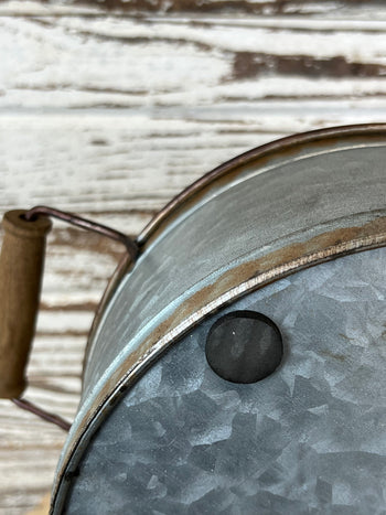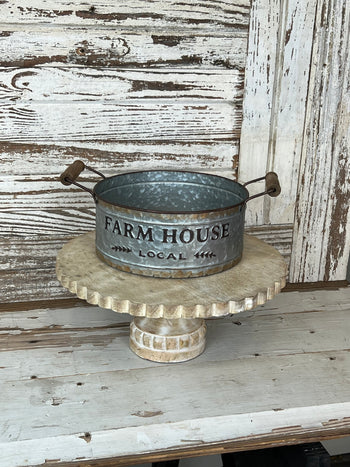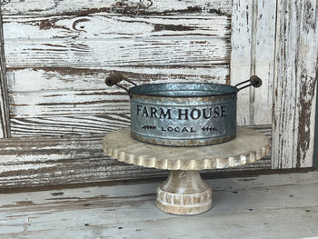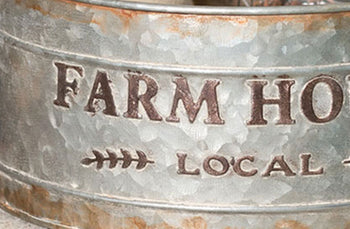 With its beautiful rustic appeal, our Farm House Local Round Bin is sure to be a favorite in your farmhouse for years to come. This metal bin has a vintage look with plenty of personality and will fill your home with charm while creating the perfect place for storage and display.
