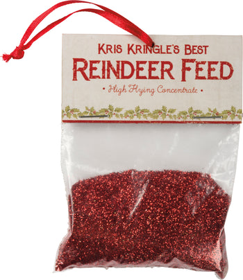 A timeless holiday staple piece, this "Kris Kringle's Best Reindeer Feed" hinged box is a fun tradition to add to the holidays! Containing magical reindeer feed, simply mix oats into the glitter and sprinkle outside to attract and feed Santa's reindeer! Oats not included.