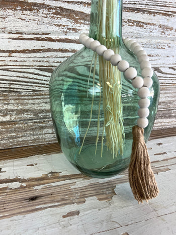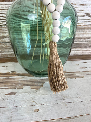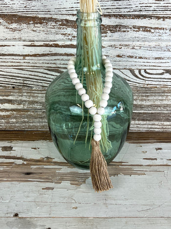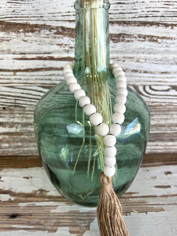 Spruce up your home with this beautiful White Beaded Loop Garland with Tassel! This is sure to be a simple touch that is sure to add texture and oh soo much charm to your farmhouse! Drape this along your vases in your living room, or around some tiered trays on your guest or master bed. We can see this styled as part of a gorgeous centerpiece on your dining table.
