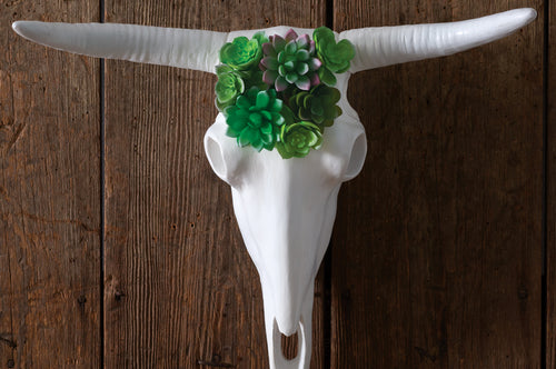 Longhorn Skull with Faux Succulents