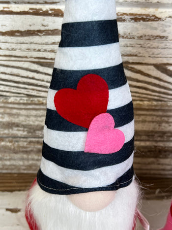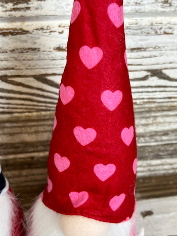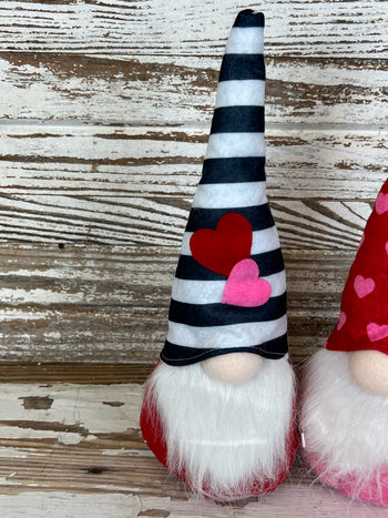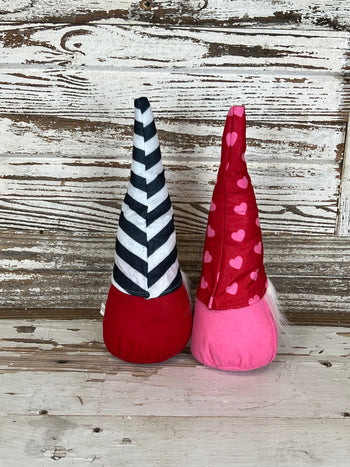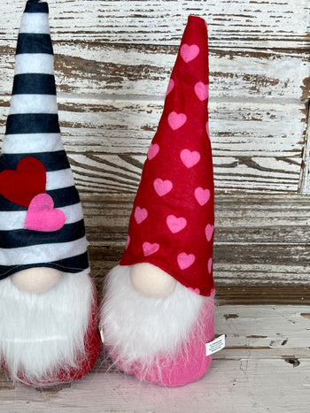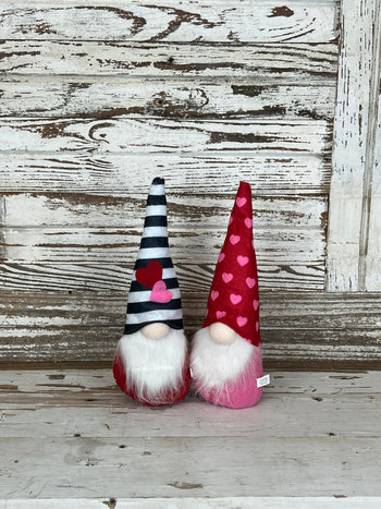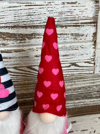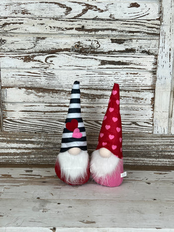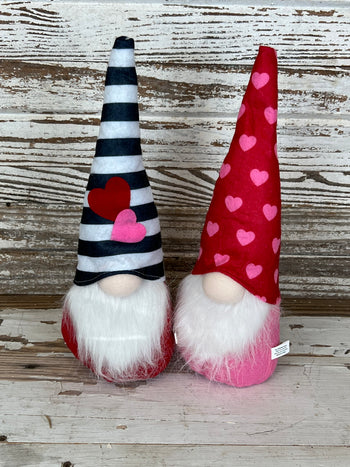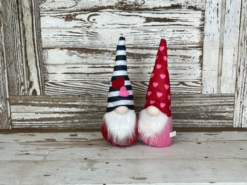 Our Heart Gnome Sitter Set, with a tall traditional hat and faux fur beards make a great décor piece to celebrate the Valentines season . Crafted with a decorative hat and plush body, sit them anywhere for a festive Holiday decoration. Book case, kitchen cabinet, great company on your desk or add to any tiered tray!