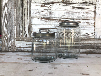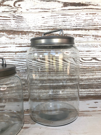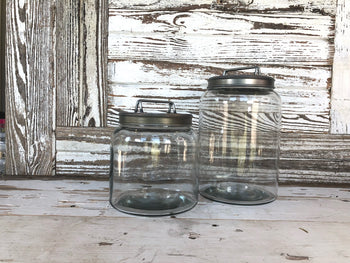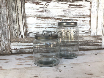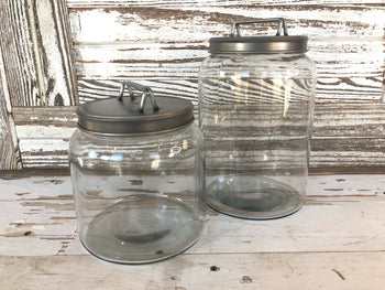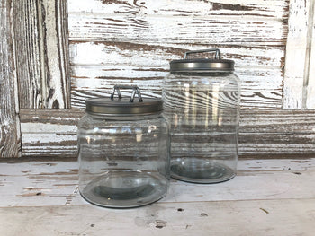 These simple clear canister jars add a practical storage space for sugar, spices, candy and other things. Place around your home to hold nick knacks, or put in your kitchen for great looking storage containers. They also make fantastic art supply storage containers. Set of 2 comes with one of each size!