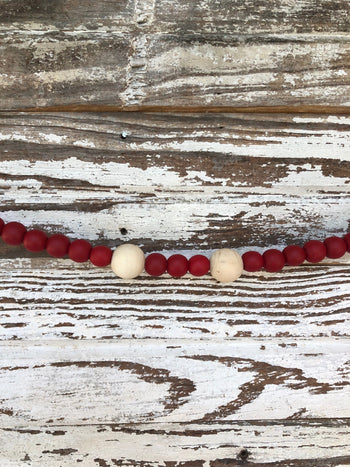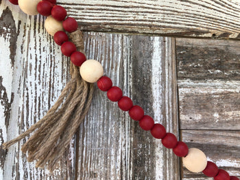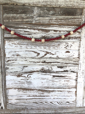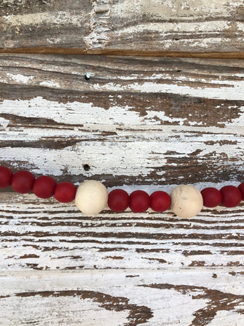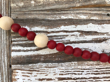 Deck the halls this Christmas or celebrate the season of love with our 9-foot long vintage style Red and white wooden bead garland. Beautiful real wooden beads in traditional Christmas colors will add a cheerful classic look to your home décor during the holidays, with the candy cane color scheme. The varying bead sizes (red beads are smaller than the white ones) add a unique touch.