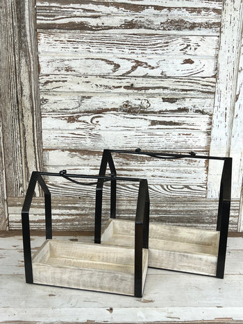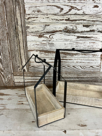 Rustic wooden table top centerpiece, our Modern Architectural Wooden Trays With Handles are perfect for your home décor. Use as ottoman perhaps a hostess gift. Rugged forged iron handles add character yet a hint of industrial past. Hold your favorite beverage of choice be it wine, beer, tea, soda pop etc.